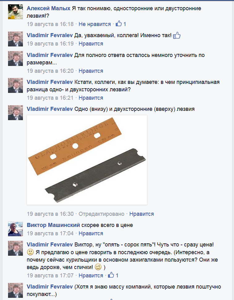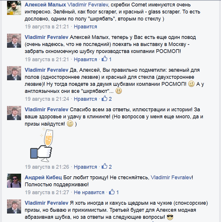 На Фейсбуке в группе "Секреты эффективного клининга" прошла викторина с обсуждением лезвий к оконным скребкам: https://www.facebook.com/groups/cleaning.secret/1642357416009019/