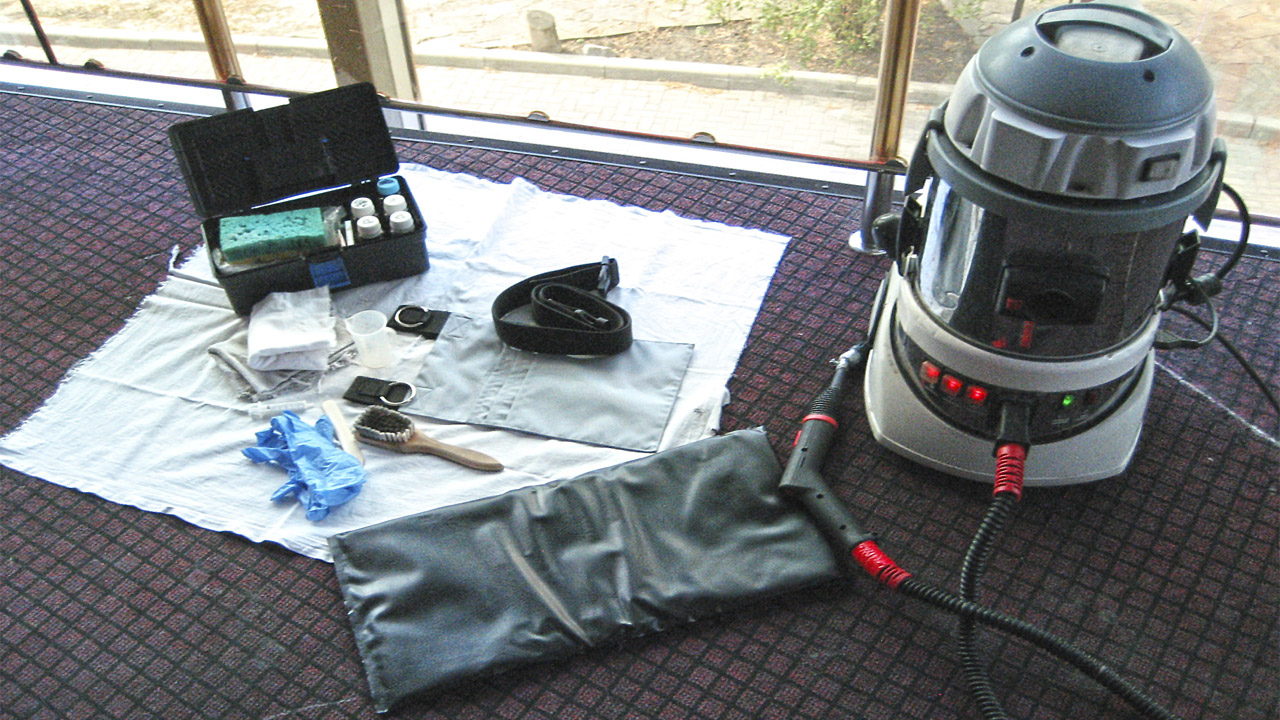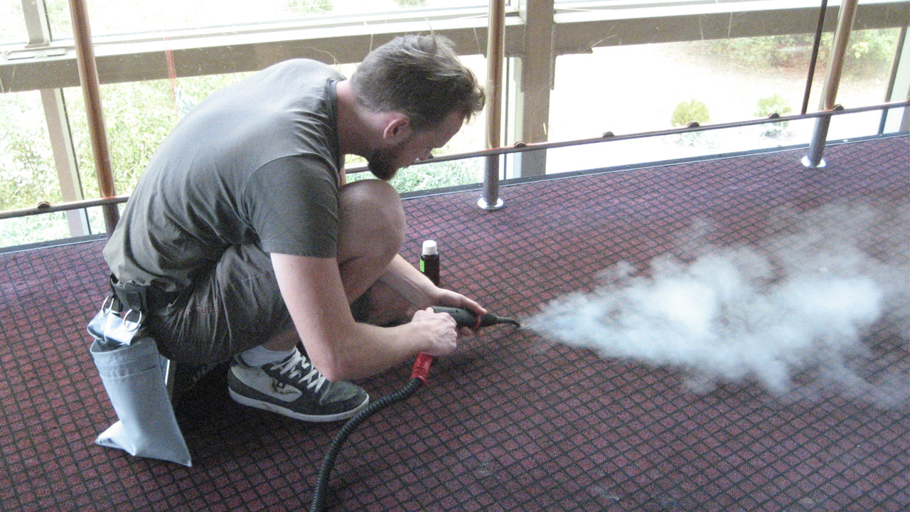 A practical example of the removal of dried glue construction with the help of the steam cleaner